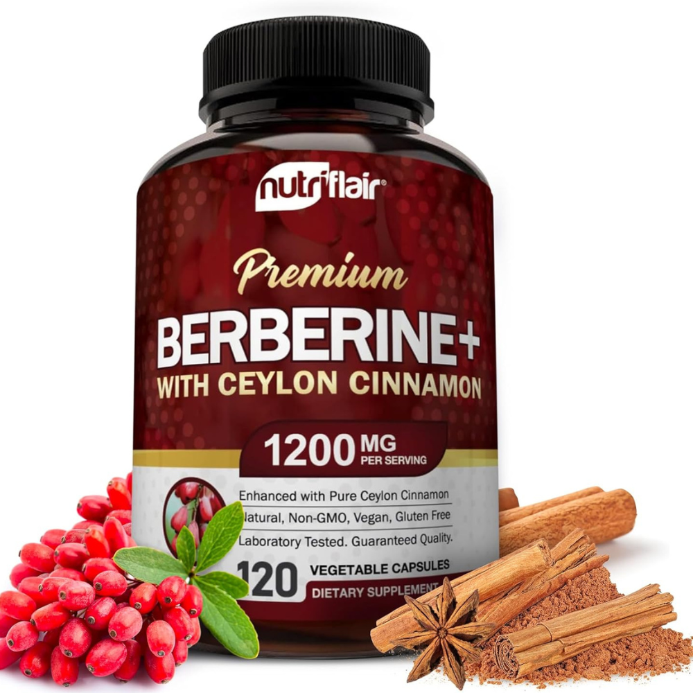The NutriFlair Premium Berberine HCL 1200mg is a powerful supplement that combines berberine with pure true Ceylon cinnamon for enhanced benefits. This combination helps support healthy glucose metabolism, cholesterol and lipid levels, and cognitive and gastrointestinal health.