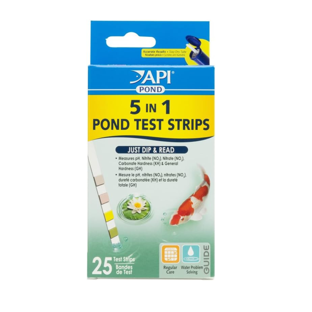 The API Pondcare 5-in-1 Test Strips are an easy and convenient option for testing pond water. These strips test for five important parameters, including pH, nitrite, nitrate, carbonate hardness, and general hardness.