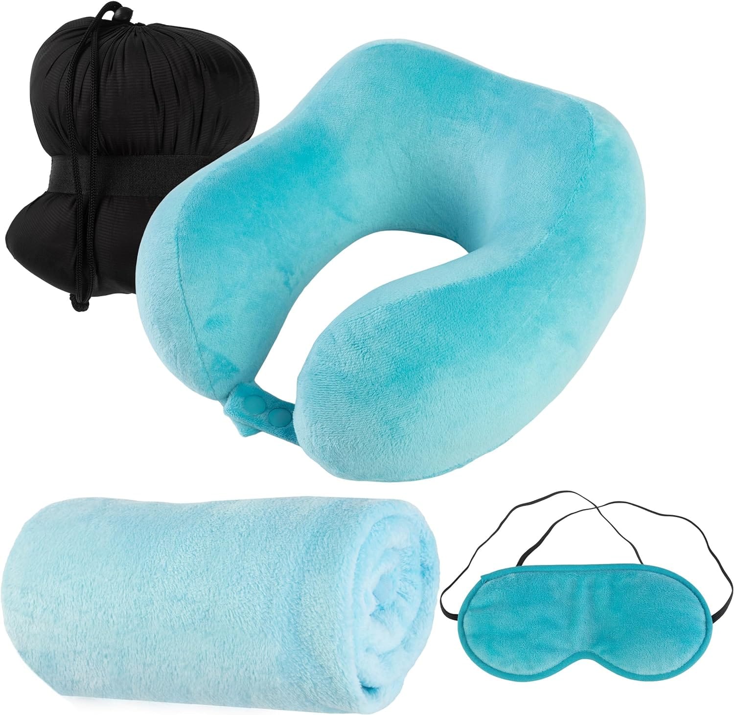 One unique feature of this travel set is the included carrying bag—perfect for hands-free portability while traveling. The pillow's soft fleece cover is also machine washable, making it easy to keep clean and fresh on your journeys.